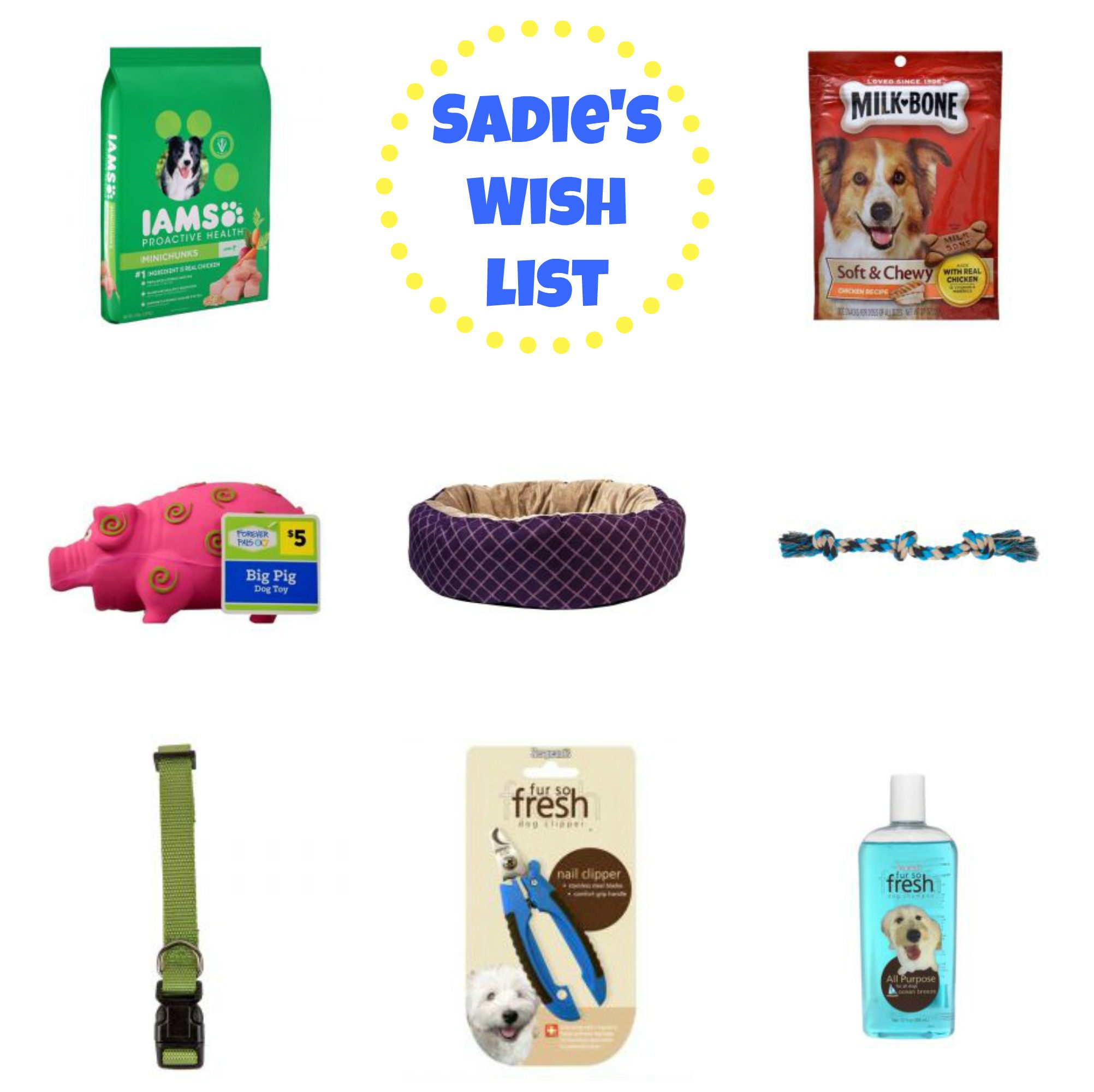 - Iams Proactive Health Dry Dog Food Since Sadie is an older dog, nutrition is more important than ever! Iam’s is made with real chicken, is made in small bite size pieces and promotes a healthy metabolism. It seems like we go through dog food every other day so I love the convenience of ordering online.